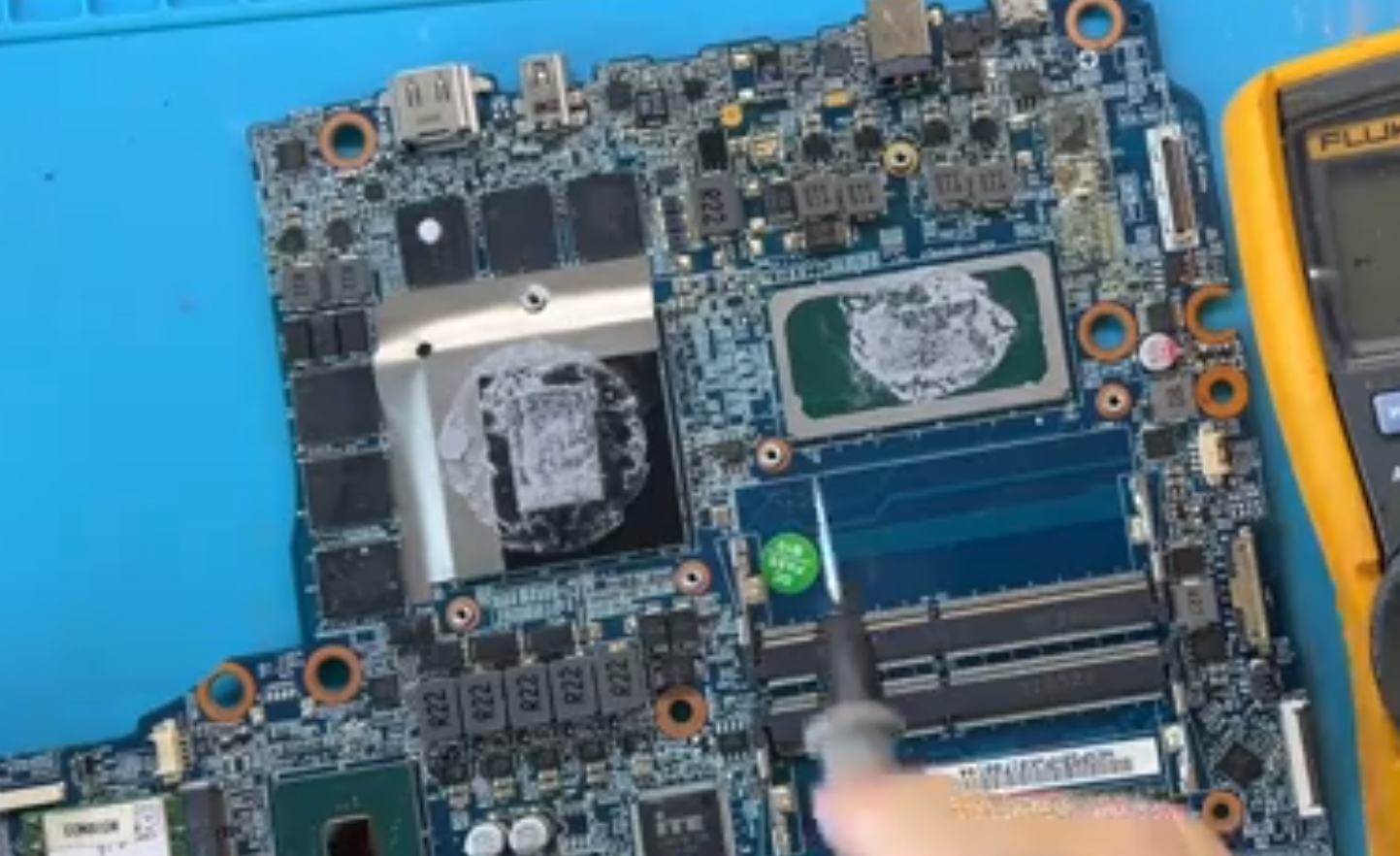 換掉測量對地沒短路問題,上電還是沒有過來VIN,直接找啊,找到另外一個p溝道,測量發(fā)現(xiàn)柵極有5v,s源極有5v,找了半天柵極為什么5v,最后測量柵源擊穿,更換完p溝道管子,完美,后面跟著主板bios。